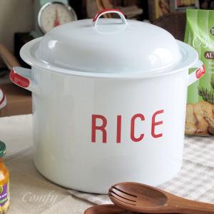 白一色のシンプル&レトロなスタイルが人気のホーローのライス缶。5kg袋のお米に対応し、最大で約7kg分入るゆとりのサイズに密閉用のシール蓋も付いています。