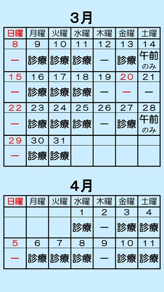 診療時間は午前9時〜12時(月・火・水曜、金・土曜)、