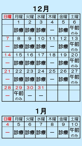 診療時間は午前9時〜12時(月・火・水曜、金・土曜)、 |