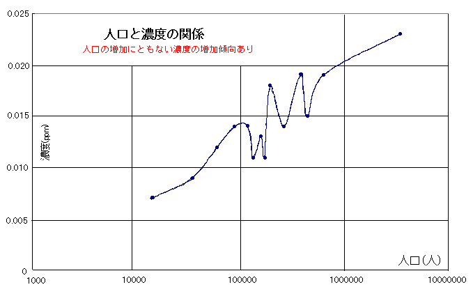 | 人口が増えると濃度も高くなる |