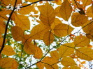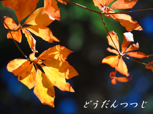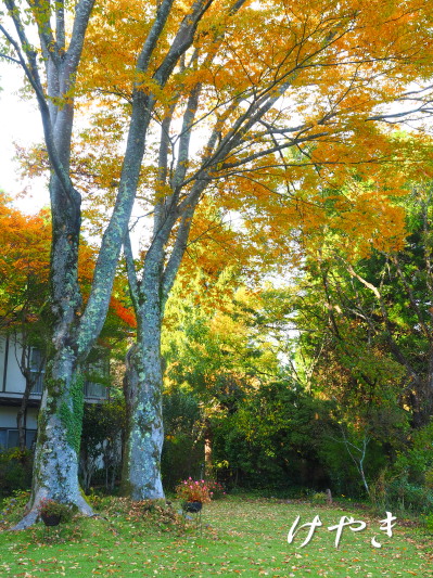 午後からは少し雲が広がり、黄葉したケヤキの葉が風が吹くたびに散っています。