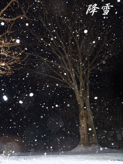 お昼過ぎまで陽射しがありましたが、夕方近くなって天気予報通り小雪が降り始めました。あっという間に雪景色が広がっています。