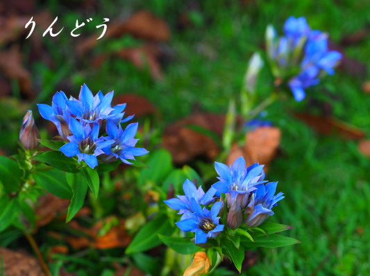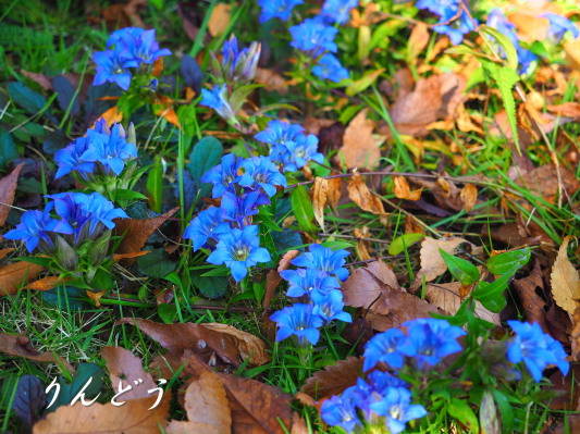 (リンドウ)芝生庭のリンドウが最盛期。陽が射すと一斉に開花しています。