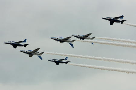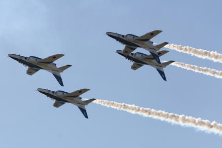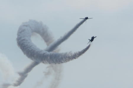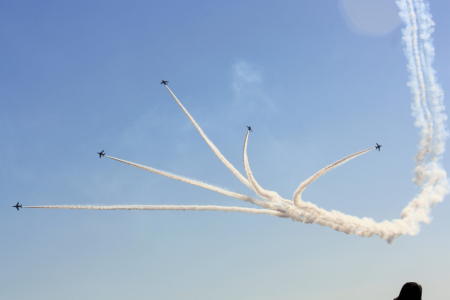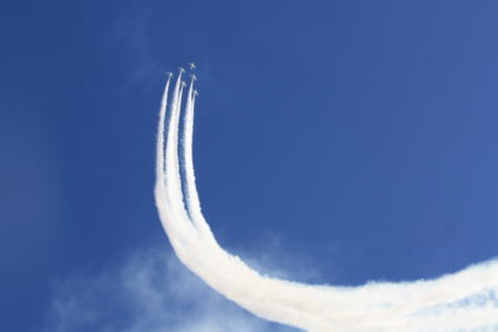 ■「オポジット・トライアングル」 2番機と3番機と5番機が、背面飛行です。