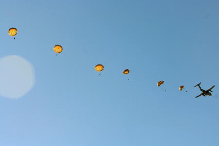■「パラシュート降下」第一空挺団 C−1輸送機から