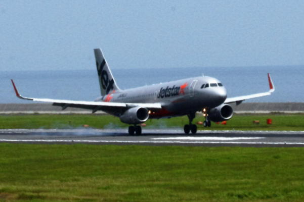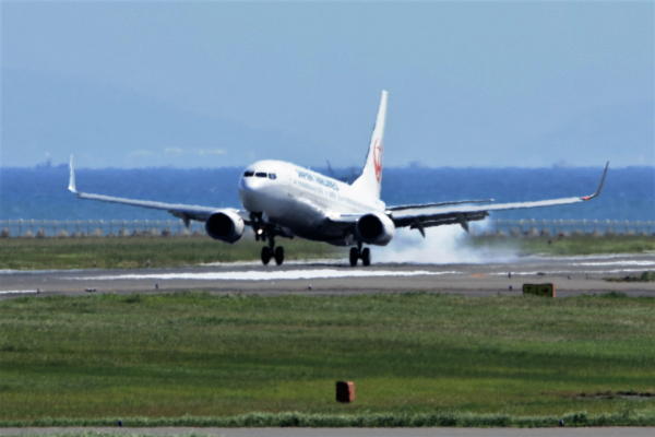 JAL機着陸・・追い風で着陸。釣れませんね。
