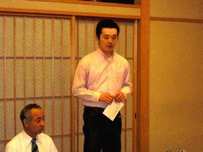 久しぶりの県産酒大会今回は久しぶりにオール県産酒の、しかも新酒を並べて楽しむことになりましたが、三和酒類を除く各蔵元からも参加して頂きました。ひとことで言いますと、大分の日本酒のレベルは決して低くない! 以前はちょっとどうかなあ?というようなものがあったりしたのですが、少なくとも今回のお酒は全部おいしく頂くことができました。 写真は、蔵元紹介で挨拶する千羽鶴の佐藤社長。 |