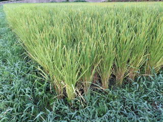 | はやしファームの田んぼでは、栽培全期間で排水口からの田面水の排出は行ってきませんでしたが、この方法を「止水稲作」として情報発信、また、水田からのメタン発生を抑制する栽培法を目指します。 |