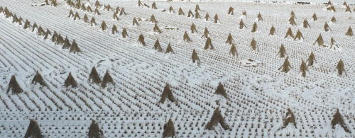 暗い雲の下にも光はある、役目を終えた田んぼも次の春を待つ・・・ウチの"はる" は何でこんなところに連れて来られたかよお分からん。