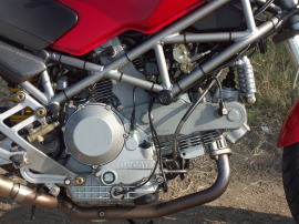 「空冷2バルブSOHC」というのは機構的には全くの旧式です。しかしそれを現代の技術と情熱で進化させ、鼓動と力量感溢れる、まるで生き物のようなすばらしいエンジンになっています。そのエンジンを支えるのもドカこだわりのパイプ溶接、トラスフレームです。