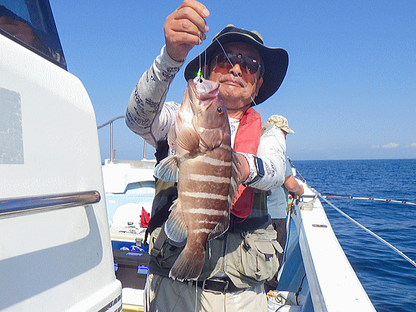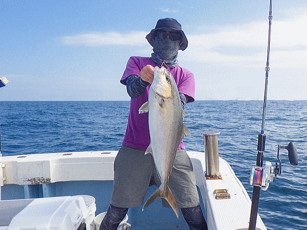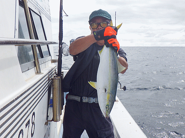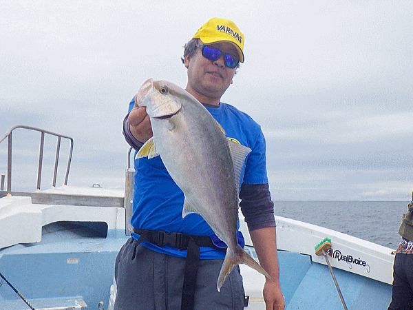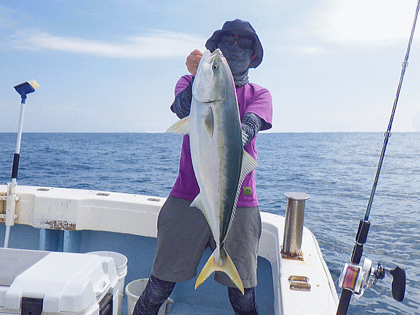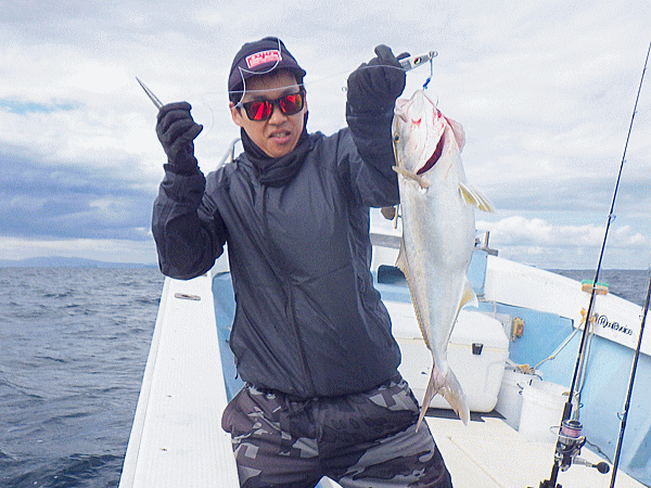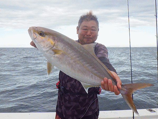 | 前回の似た潮では鰤族4〜6kgがチョッカイ出してきて間がもてましたが今日は生粋のヤズばかり(^^;)その気に成れば100本ノックですなっbb上潮飛んだ大きな潮でポコポコ波もあったのでポイント凪のネリゴロードに変更!ノッケからナイスサイズがヒット♪鰤族も4kgまで相手してくれます(^ω^)ポイントを変える度に例年ほどの群れでは無さそうですがチョイチョイとヒット♪後半は恒例のイベント海上で仕上げです。カンパチ一族、ブリ一族、カイワリと魚種を選ばなければ全員安打で定時終了です♪♪♪今日イチも含め数本のデカンパチのフックアウトは・・・残念!(ノД`)・゜・。 |