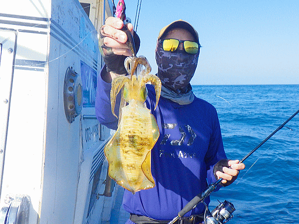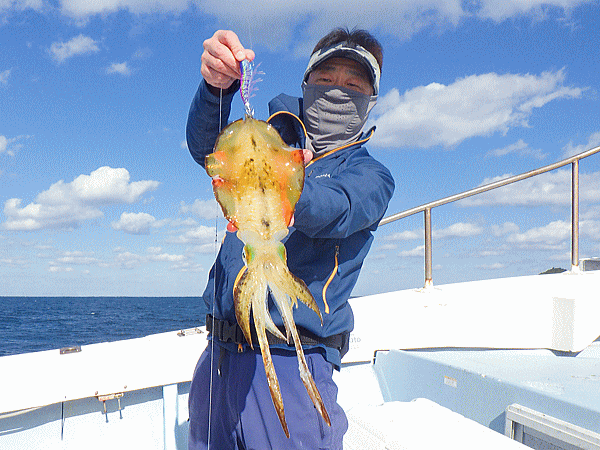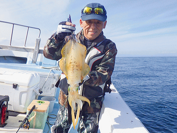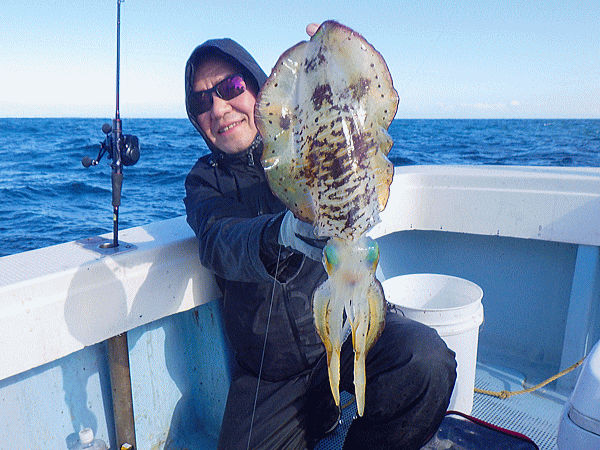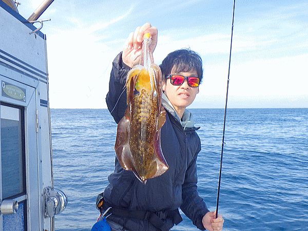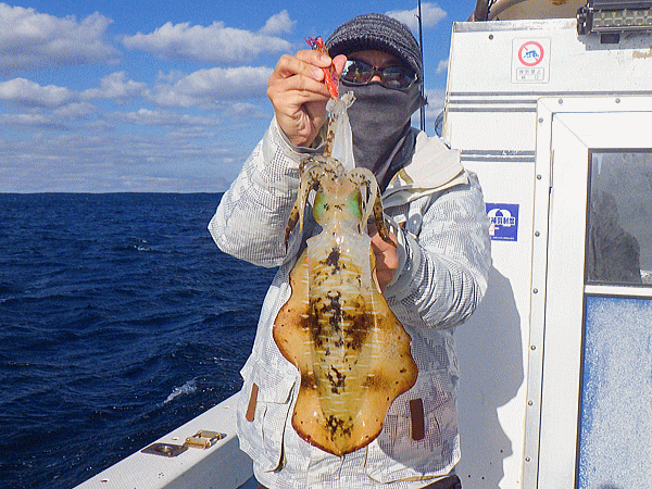| ポイント到着早々に大型海洋哺乳類の乱舞(゚д゚)!心配したアングラーも居ましたが・・・大丈V(ヴイ)bb昨年も御歳暮捕獲出船した時も大型海洋哺乳類の大ナブラを蹴散らして普通に結果を出した実績があるんで普通に流してヒット♪今日は水潮の気配があり心配しましたが心配無用でしたなっ!とりあえず『釣るぞオーラ』を消すのに皆さん必死でした(≧▽≦)モイカ、甲ちゃん、キンコウ、ケンサキのイカ4種目達成のモイカは余裕の全員安打で定時終了です♪♪♪スクスク成長してますなぁbb |