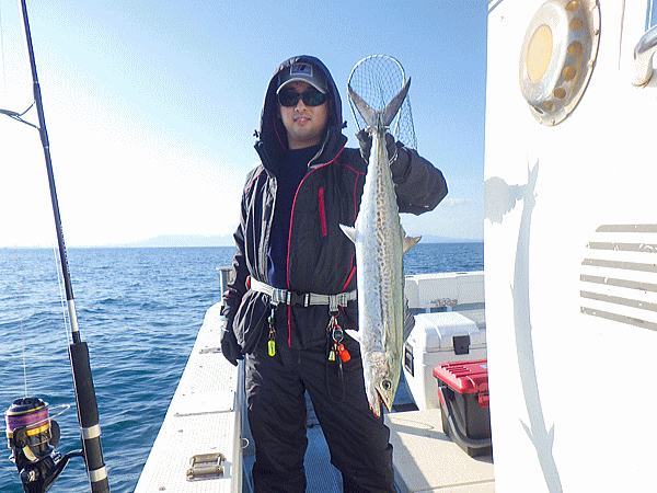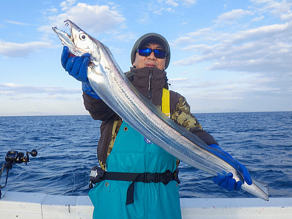 | 先行予約者は勿論経験者!いくら凪の日でも平日は集まらないだろう・・と思ったら興味ある方がバタバタ集合(^^;)とりあえず2名の方は太刀ギングは初挑戦で経験者の方から仕掛の調整など色々とレクチャーを受け実釣bb太刀魚をサクッと余裕の全員安打しましたが何故か?ワンサイズ経験者と違う・・・このゲームカワハギに似ててサイズのレンジを探ってナイスサイズの当たりレンジを見極めるのがミソ!そのうち小さな当たりも取れるようになり暫定番長を脅かすサイズ全員GET♪・・ですが二桁の番長候補は全部数センチ足らずで・・・残念!(-。-)y-゜゜゜ほかジギングで狙ってた方に大鯖など♪ |