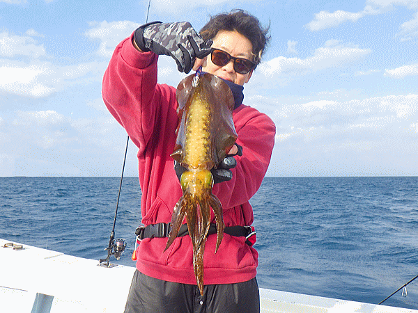 | 今日は潮色も良くなってたので期待しましたが・・・期待通り(≧▽≦)活性も高い様でヒットしてるモイカについてくる事も数回♪潮待ちもホトンドなく面白い(?)一日でしたなっ!釣果は番長サイズは出なかったもののモイカ、キンコウ、ケンサキのイカ三種目GETのモイカは全員安打で終了です♪♪♪数日ぶりに戻ってきましたなっbb潮色が悪くなって消えたアンバージャックも戻って来ないかしら??(^^;) |