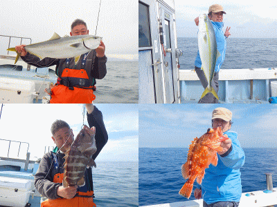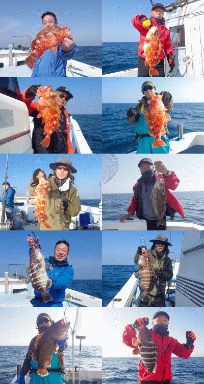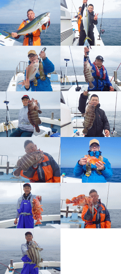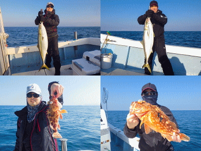 | ジギング&ロックフィッシュで釣行!今週の潮周りから春の潮になり青物ジギングはチャンスが多くなりますが・・今日はジギングではユルく根魚には速い中途半端な潮(苦笑)とりあえず朝イチの潮のユルい時間はロックフィッシュからスタートでタカバから♪チビ五郎、小五郎、中五郎やアヤメ一族、タカバはMAX2.5kgまで4本にセトダイなどbb潮の流れが速くなったとたんにヒットが遠退いたので青物ジギングです。底潮は全く水圧感じさせない感じで想定内の苦戦(笑)ブートキャンプポイントでMAX7Kgまで4本、真鯛で魚種問わなければ全員安打で終了です♪♪もう少し時合欲しかったですなっ!まだ先日の終日ジギングでヒットしてたトクの群れが居るので今週は釣行できればブートキャンプの・・・予感(爆) |