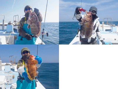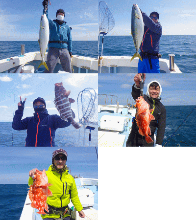 | やっと週末時化ループから解放か??週間予報が毎日更新されて今日は微妙天気図でしたが春の海ですねぇbb風のわりには波無し♪前半は潮が短かったので近場からスタート!鳥の下や瀬に群れは居ますが底が動いてなくイマイチ(沈)折り返しを待って再挑戦です。アヤメちゃんや真鯛がポツポツあたりだしてスタート♪真鯛は4枚、ハイカラ(3〜3.4kg)2本、トク(5.3〜6.5kg)まで7本にバラシ数本と初挑戦の方も無事にデビュー戦を終え全員安打で終了です♪♪まぁ真鯛がジグに釣れるって良い潮だったんですねぇ(笑)時合が短いわけですなっ! |