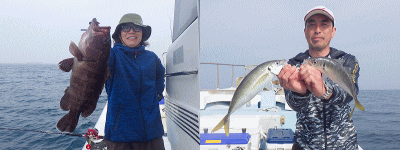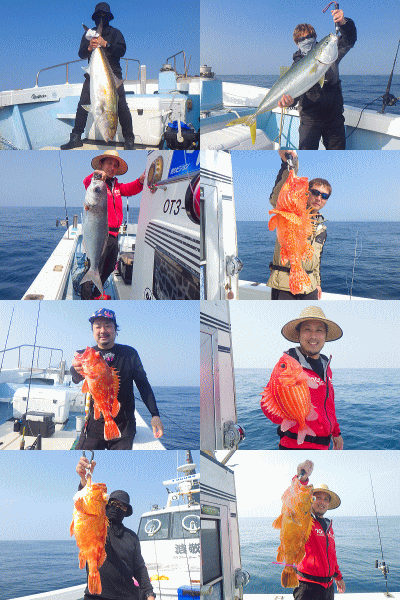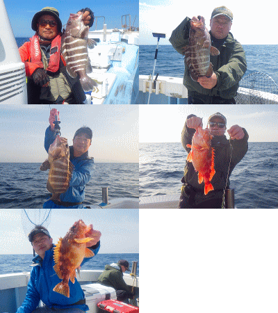 | ジギング&ロックフィッシュで釣行!何時もの時間で観る昨日の予報では今日の出船時間から凪♪昨日は時化で中止の週末時化ループからやっと脱出したか??と思ったら・・・夜中に予報が変わり半日ズレ込む先日の根魚釣行の様な天気(溜息)「まぁ〜た希少庁(当たるのが希少)に騙された!」な感じで朝の潮は根魚一択で風裏ポイントを攻め込んでみました。他に行けるところも無かったんで(苦笑)上潮ガンガンの根魚狙うには辛い潮(泣)底潮流れてないんでしょうねぇ・・アヤメちゃんもチビ五郎も相手してもらえず苦戦しながらも小五郎〜大五郎、アヤメちゃん、ヨコスジフエダイ3本、タカバ約2kg1本、ガンゾウ鮃1枚GETbb一応この時点で全員安打達成♪タカバの今日イチはファイト中の突っ込みで中層フックアウト(沈)昼からの潮もだんだん速くなり青物ジギングに移行しましたがトク5.23〜6.43kg4本で終了です。先日のジギングの感じなら初挑戦の方も余裕だったんですが今日は潮が味方してくれなかった様ですなっ!朝の潮を狙えたら少しは違ってたのかもしてませんが今シーズンはとりあえず行ってみないと分からない底潮次第です!! |