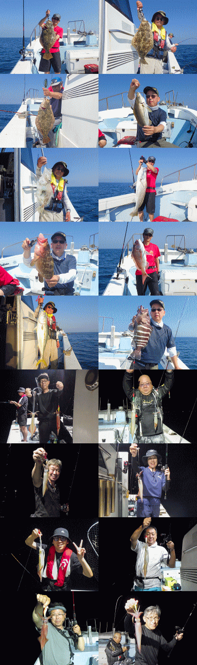 | 連日の好釣果で今日もニコニコしながら行ってきましたが・・・連日のツケが回ったのか?前半はナイスサイズのアコウからスタートして鮃の時合に突入とパターン的には問題無かったんですが長ぁ〜い潮待ちから忘れた頃に青物がチョッカイ出す程度!(;'∀')他のポイントも回ってみましたが鰯は付いても銀の奴すらノーバイトです(^^;)鮃4枚の船縁オートリリース1枚、タカバ4本、アコウ、鰤8本、真鯛、チビ五郎〜小五郎、フカなど釣果的には全員安打で問題ないんですが・・・今日も鮃全員安打にはならず!ケンサキアタックなどもあったんで昼ケンも夜ケン同様に面白くなってきたかもしれませんなっ! |