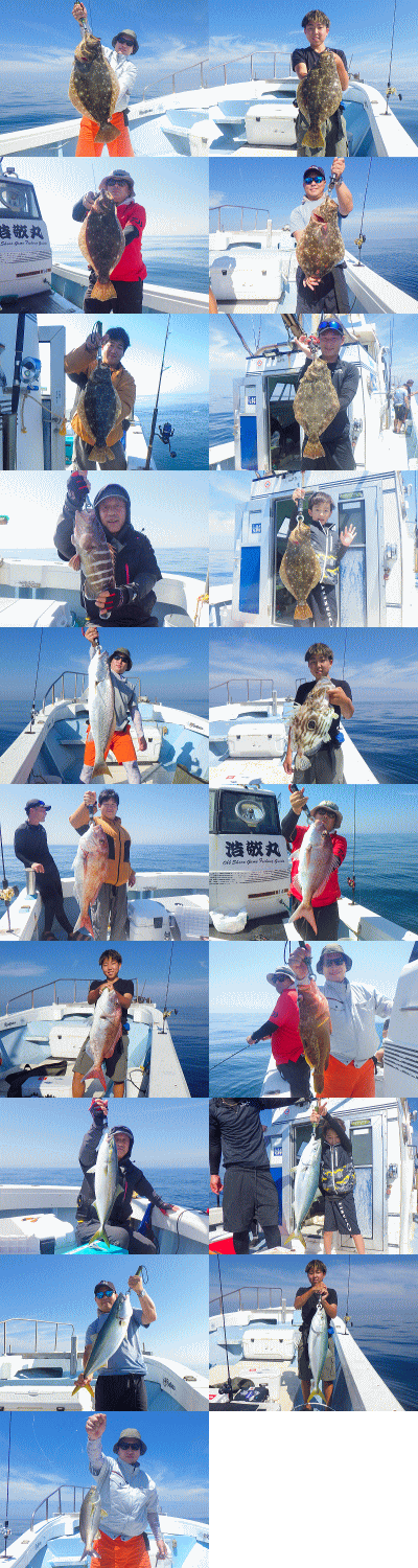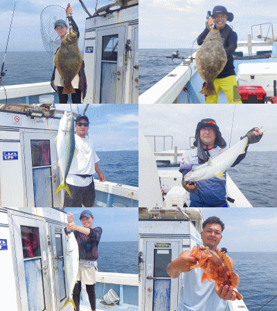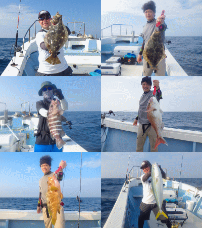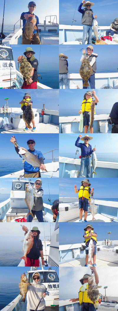 | Instagramのストーリーで「昨日は14枚」と言ってましたが鮃13枚が正確な数字です(^^;)それでん昨日は9枚やっつけてるのに上回る数字!ストック量には驚いてます(≧▽≦)昨日の今日で『良く釣れた次の日は・・・』と心配はしてましたが時合がくると船上は大忙しでした(^^)青物はジギングでもいけそうでしたが流石にこの時期はジャークするより巻いて落してプルプルしたら抽選会からのぅイーターがヒットしたら汗をかくのが楽で面白いですなっ!ほか鰤キープ分以外リリース、オオニベもキープ分以外リリース、真鯛3枚、ゼニイチ、アコウ、チビ五郎〜中五郎、ハンサコ、タカバ、フカなどなどで余裕の全員安打で終了です♪♪♪ |