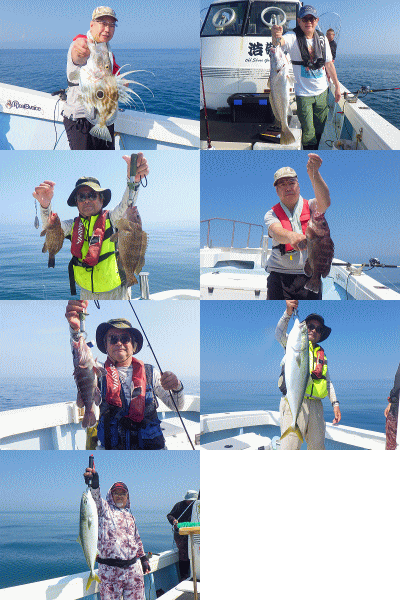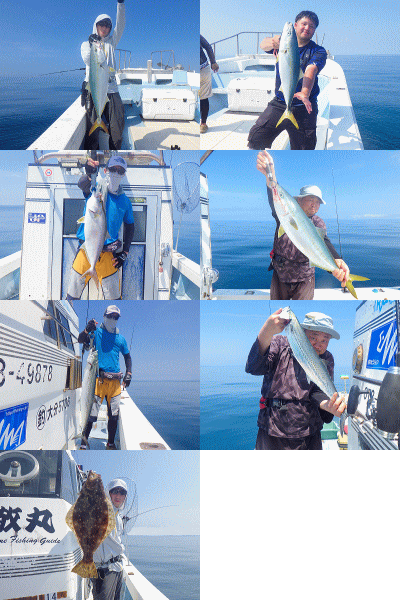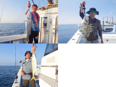 | 昨日に引き続き残暑きびしい一日・・・「夏ぃ〜(暑ぃ)わぁ〜」(;´Д`)今日は落し込み初挑戦の方とGWの『子供の日S.P』からハマってるスーパー幼稚園児やエキスパートの方までbb鰯が付けば誰かしらのロッドが曲がります♪御所望のラメヒ〜も3枚!歯型を残して逃げた奴も!オオモンハタ2本GETからスタートで大汗をかきながら楽しんで頂きましたbbほか鰤族8本キープほかリリース、ネリゴ4本、真鯛2本、オオニベ1本キープほかリリース、サゴシ、エソ、フカ・・はオールリリース、チビ五郎〜小五郎、ヨコスジフエダイ2本、カイワリなどなど余裕の全員安打で終了です♪♪♪青物がヒットすると他の方の仕掛に絡みますので誰かがヒットしたら速攻回収は必要ですよっ!!またフィッシュグリップのリリースが今年は目立ってますので装備品のグリップを使った方は船長まで戻すよう御願い致しますm(_