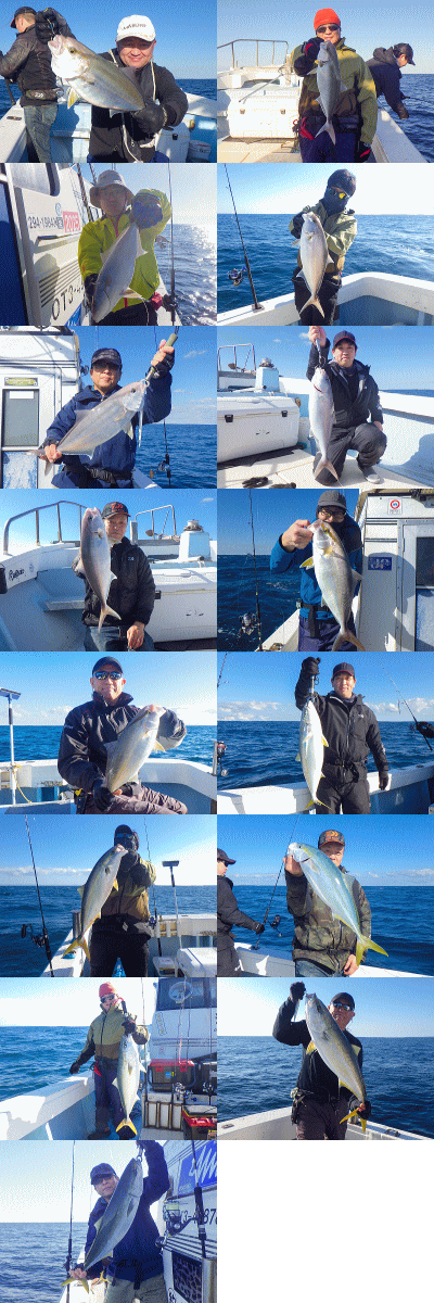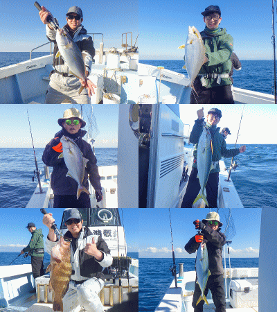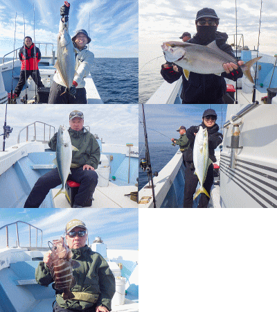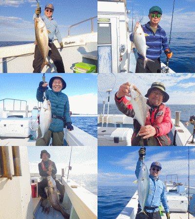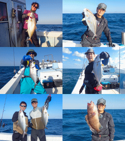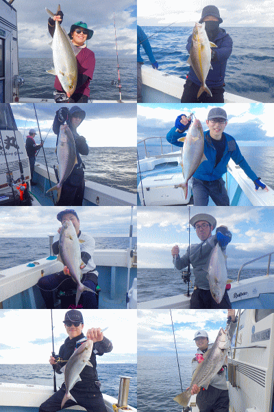 | 終日予定でしたが昼前くらいから強風予報・・・皆さん出来るところまで邪悪したい!との事で半日に変更して出船です。朝からヤズがチョイチョイとヒット!長い潮待ちから本命GETして時合スタートですbbバラシした数本は本命か?定かではないですが今日イチサイズに似た引きもありましたなっ!釣果はヤズ8本ハイカラ4本でキープ6本ほかリリース、ネリゴ1本、カンパチ5.01kg1本、タカバで鰤一族は全員安打で終了です♪前半のヤズがヒットしてる時に後半を期待して写真撮らなかったんで次回からは最初の1本目はしっかりと撮影しますぜっ!(≧▽≦) |