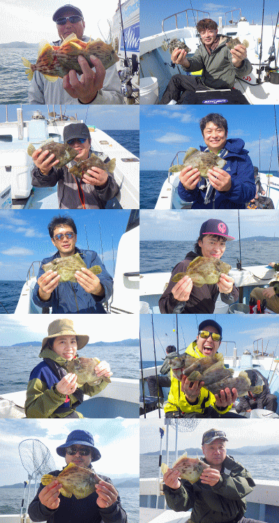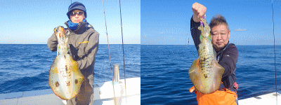 | 今シーズン2回目の釣行bb潮も天気も問題なし♪朝イチ寝起きの身体に優しい浅めからスタートの予定でしたが流れが深い方へ・・・(^^;)一気に寝起きの身体に悪い水深です(≧▽≦)ポツポツと平均身幅5Cmからヒットで時折身幅7Cm〜8Cmbb徐々に船上が盛り上がってきてMAX身幅10Cmまでです♪この身幅のウチの基準はエアーで膨らむ部分をさけ背ビレの付け根から喉までの距離を測ってます。今日は狙い潮だからか?後半は番長合戦サイズで数センチ争いとなりましたなっ!多く釣った方で・・・どんだけでしたっけ(^^;)余裕の全員安打で終了です♪♪♪番長更新!! |
