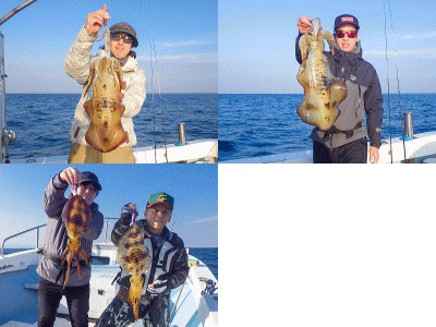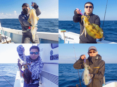 | 少人数精鋭でも突っ込み上等!と言われたので行ってきましたbb冬の高気圧にはいると南西から季節風が強めに吹きますが10時過ぎか潮止りで普通は止みますが今日は一日吹曝し(;´Д`)冷たい風で寒いっすわぁ・・・帰港中は風も止んでポカポカ陽気でしたけどね。今日は朝からポツ・・・・・ポツ・・・・と忘れた頃にヒット!居ると言うことは他に数杯居るはずなんですが単発。大きい潮もですが底潮次第が今シーズンのパターンですなっ!釣果はモイカ200g〜1.8kg超えまで10杯、甲ちゃん1杯のモイカは全員安打で終了です♪けっこう玩ばれてるパターンなんで活性がイマイチのようですね。番長更新!(Instagram
