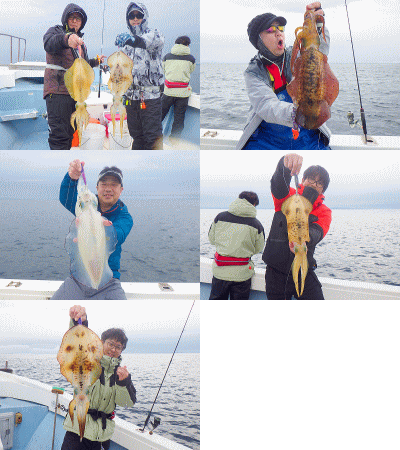 | 船底掃除終了の一発目!早々にスミを付けられました(≧▽≦)今日は上潮のみで底潮動いておらず・・・潮が小さくても大きくても今年は底潮が動かないと苦戦しますなっ!どこかで起こるサービスタイムを皆で期待しましたが・・・朝からポツリ・・ポツリ(^^;)少しチョッカイは出されるもののワンタッチで終了!サイズは良さ気でしたが後半はサイズダウンと活性低い一日(;´Д`)本日ドラマありbbリーダーブレイクしてモイカをバラシ!「餌木を付けたモイカを誰かが釣ったら面白いのになぁ・・」とか言って数分後に真面目にバラシした餌木付きモイカがヒット!(爆)餌木は無事に持ち主へモイカはどちらに渡ったのか?は不明です(≧▽≦)モイカ200g〜1kg超え22杯、甲ちゃん2杯でモイカは全員安打で終了です♪♪前半平均は400〜500gで喜んだんですけどねぇ(;´・ω・)(Instagram