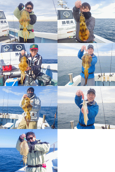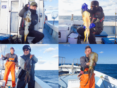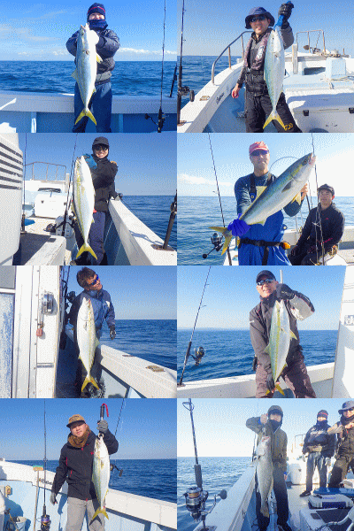 ;∀;)昨年の12月は過去の釣果を見る限り中頃まで釣れてます。今年はまだ狙えますので帰港が暗くなって良い方は予約時に申し出下さいm(_ _)m他の方は年末ジャンボ鰤狙いついでの拾い釣りですなっ!今日は鰤一族MAX5kgまで33本のキープ7本ほかリリースで全員安打で終了です♪ |