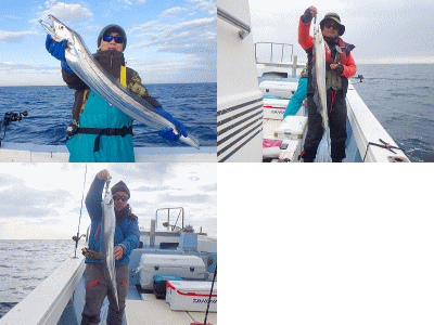 | 先行予約者は勿論経験者!いくら凪の日でも平日は集まらないだろう・・と思ったら興味ある方がバタバタ集合(^^;)とりあえず2名の方は太刀ギングは初挑戦で経験者の方から仕掛の調整など色々とレクチャーを受け実釣bb太刀魚をサクッと余裕の全員安打しましたが何故か?ワンサイズ経験者と違う・・・このゲームカワハギに似ててサイズのレンジを探ってナイスサイズの当たりレンジを見極めるのがミソ!そのうち小さな当たりも取れるようになり暫定番長を脅かすサイズ全員GET♪・・ですが二桁の番長候補は全部数センチ足らずで・・・残念!(-。-)y-゜゜゜多く釣ったアングラーで20数本、ほかジギングで狙ってた方に大鯖など♪ |
