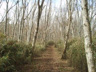 | チャレンジ!祖母傾連峰完全縦走 狭間 渉 九折越から初冬の傾山と二ッ坊主その3 2005秋、傾山&山手本谷再訪 ○募る想いに駆られて 日帰り完全縦走の前哨(偵察)として、とりあえず山中一泊二日で全行程を通してみようとの思いが前回不完全に終わった。滅多に単独行などしない高瀬なのだが、消化不良と鬱積したものを払拭したかったのか、その後彼は独りで前回の残りの半分を九折登山口から逆コースで通したらしい。以下はおゆぴにすとホームページ掲示板2005年10月9日に書き込まれたその時の内容。 「『蝉しぐれ』、『四月の雪』だの巷の軟弱な世界に別れを告げ、編集長(筆者註:私のこと)は四万十川の人となった。この間隙を縫って本日傾山、及び、尾平越ブナ広場の水場の確認に行く。九折登山口より三ツ尾、坊主コース、傾、九折越、ここでついでに、笠松、本谷、尾平越までいってしまった。このため、九折登山口に駐車した車迄行くのが大変でした。これで完全縦走は私におまかせあれ。フフフ、九折登山口(6:30)〜尾平越(13:30)まずは報告まで。」(以上 投稿者名:ガブリエル高瀬) 本シリーズの‘その3’にその時の紀行を紹介してもらおうと紙面を空けて待っていた(現在執筆中らしい)。もう一方の当事者である私ももちろん‘遠かった傾山’への思いから残りの半分が気になっていた。とくに長いことご無沙汰になっている傾山に対して前回の山行を機に再訪の思いがいっそう強くなっていたのだ。 完全縦走じゃなくても、できればまだ‘秋’が残っているうちに傾山に行きたい。この週末雨が降ってその後木枯らしが吹いたら、山はもう冬一色になってしまう。その前にせめて傾、秋の傾だけは登っておきたい。そんな思いで再び祖母傾山系への山行を企てた。 ![]() 前傾の夜明け 11月16日 早朝大分を発ち傾山九折登山口に着いたのが丁度7時。今日の予定は九折登山口から観音滝、三ッ尾を経て傾山山頂を踏み九折越まで足を伸ばすこと。オーソドックスながら登りごたえのあるコースだ。傾山は過去にいくつかのコースから登ってはいたがメジャーなこの九折〜観音滝〜三ッ尾コースでさえ、至便な林道利用によるショートカットなどであり、きちんと下から律儀に通したことがなかった。 登山口で中高年の登山者一人に会っただけで停めてある車の数からしても‘静かな山歩き’はもちろんのこと、前月脇目もふらずにひたすら黙々と尾平まで通したであろう高瀬の時に比べて、‘潤いのある山歩き’がどうやらができそうだ。「あれ!?最初から予定は九折越までなの?尾平越まで足をのばせばいいじゃないですか!」と言いたげな高瀬の笑い声が聞こえて来そうだ。 ○観音滝にこだわる 大分登高会時代、昭和48年から始まった傾山山手本谷周辺の岩と沢をめぐる地域研究でこの谷には足繁く通い詰めた時期があった。が、上畑からは前述したように当時拓かれて間もない林道を車でのアプローチであったため、観音滝は、一度はその滝壺付近に立ち飛沫を被りながら滝の全容を見上げてみたい、それも人っ子一人いない錦秋の静かな日に、と思いながらも未体験のままで、その後ずーっと気になっていた。そんなわけで私にとって九折〜三ッ尾コースに足を踏み入れる以上観音滝だけは絶対に素通りできない場所であった。 観音滝はこのコースを少しはずれたところにあるため、縦走のように先を急ぐ気ぜわしい長い山行ではつい省いてしまいそうになる。「高瀬君、観音滝を君は見たかな? それをしなければこのコースを採る意味は何?何にこだわるの君は?」と言いたい、もちろんちゃんと足を伸ばしているのであれば文句はないのだけれども・・・。 ![]() 観音滝 7時39分、その滝壺付近に初めて立ち落ち口を見上げる。さほど多くはない水量が高距約80mのスラブを伝って落下する。深い滝壺といったものは特にない。傾山の山腹全体はまさに錦秋の趣なのに、滝周辺は樹種のせいか紅葉はほとんどない。何もかもが予想に反しているが、その壮観さにはやはり目を見張る。 再び歩を進め急登ののち滝の上部に出る。後で知ったことだが、滝のすぐそばを登っていくのでわざわざ滝壺にまで足を運ばなくても容易に眺められる。ところで、観音滝は何故か上部から覗き込んで転落する人が居るらしい。立て札に「危険!覗き込むな」とわざわざ書いてある。どうしてこんなところから落ちるのだろう?と落ち口に気を取られた直後、浮き石を踏んで転倒し、お尻を強打、思わず手をついたはずみに持っていたデジカメを岩にぶっつけ液晶パネルが壊れてしまった。何と不運なことか。不運といえば、昨年夏からこっち仕事でも不運続きだった。こんな時はこの先自重あるのみだ。 ○登るほどに秋から冬の装い 7時58分、懐かしい、本当に何十年ぶりかの林道と合流。登山届に記入。木々の間から喜作坊主、三ツ坊主が眼前に圧倒的迫力で迫るが、昔に比べ林道路肩の木が生長して大きくなりうまくカメラにおさめきれない