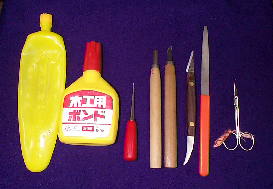 目のへこんだところをめうちで穴をあけ、目の先にボンドのりをつけて上から入れこみます。