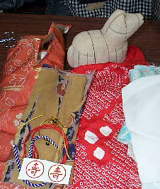今回は家にあるちりめんとやよいにあるいろんな生地を使ってみましょう。