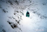 一面の銀世界、雪も降り続き視界は今少しきかない中を、雪質が軽いのでラッセルはさほどにも苦にはならない。途中の崖の桟道部分は雪に埋まりトラバースでは神経を使い、時には腰までのラッセルに奮闘しながら、「この雪では三の鎖から山頂まではかなり問題だな」との思いがしだいに強くなる。